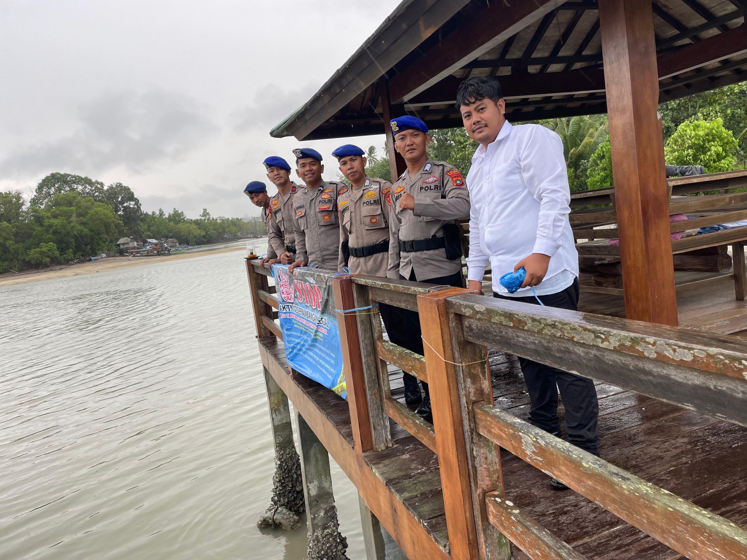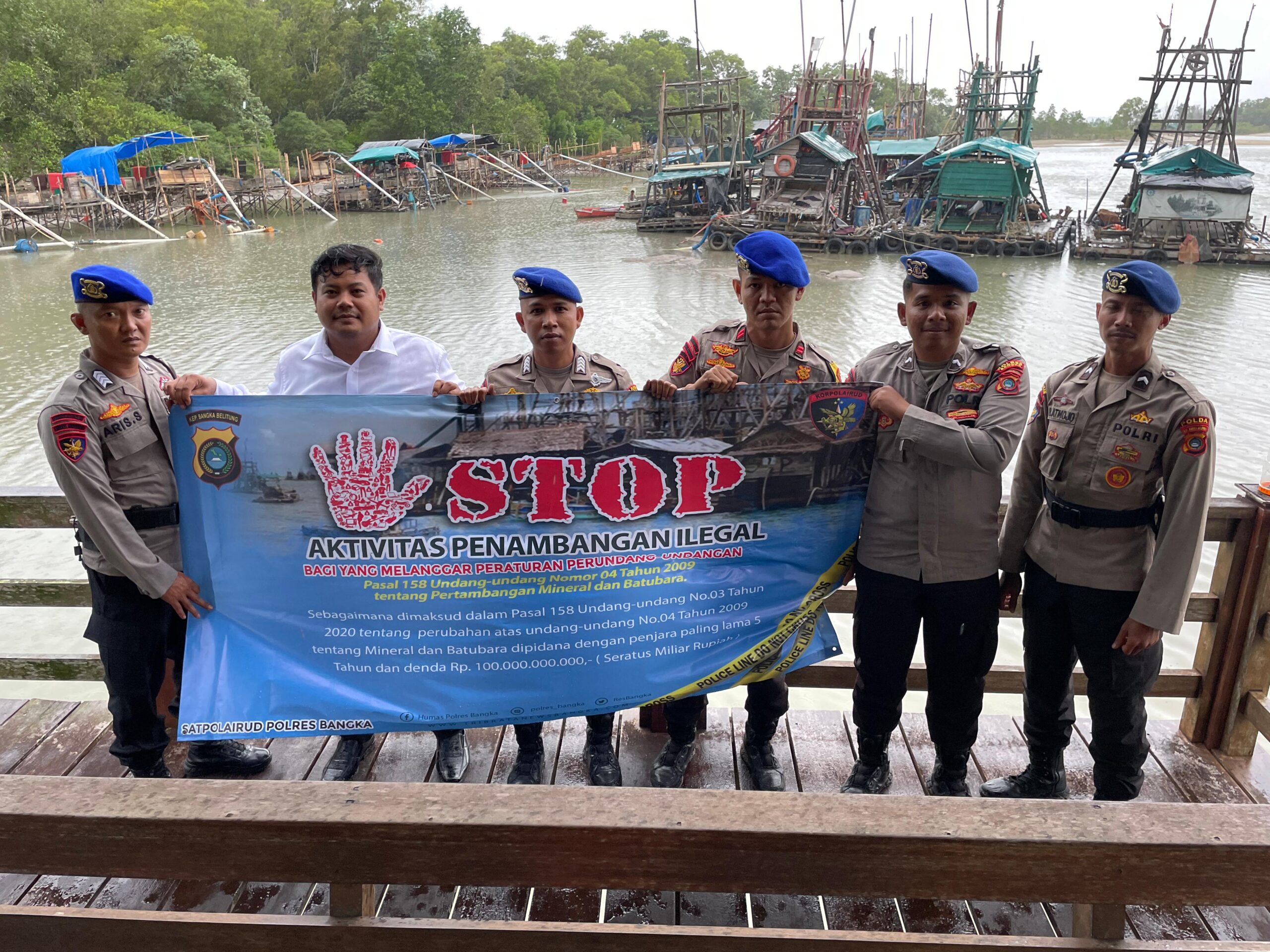Spanduk tersebut bertuliskan larangan dan peringatan diplomasi tambang, sebagai bentuk sikap tegas penegak hukum terhadap aktivitas pertambangan tanpa izin yang merusak lingkungan.