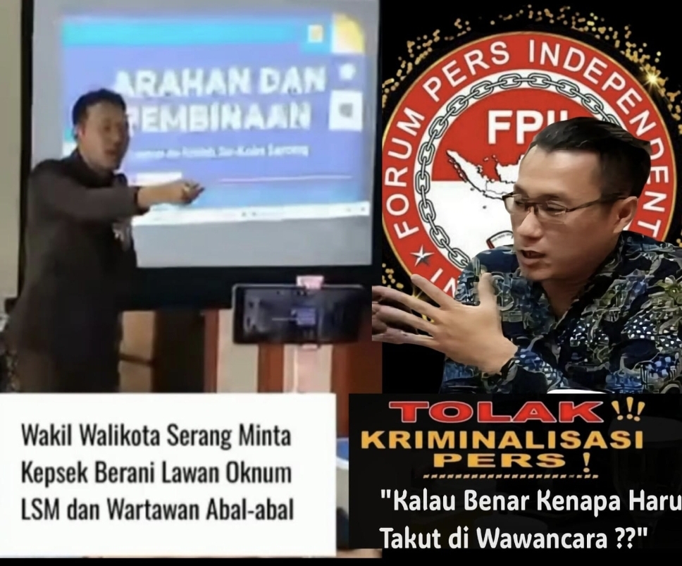 Kami Organisasi Pers Forum Pers Independent Indonesia (;FPII) kecam keras dan ingatkan Wakil Walikota Serang jangan membuat pernyataan yang tidak etis dan menyebarkan kebencian terhadap insan pers , karena pernyataan ini memperkuat pentingnya ruang demokrasi dan kebebasan pers sebagai pilar dalam sistem pemerintahan yang transparan dan akuntabel.